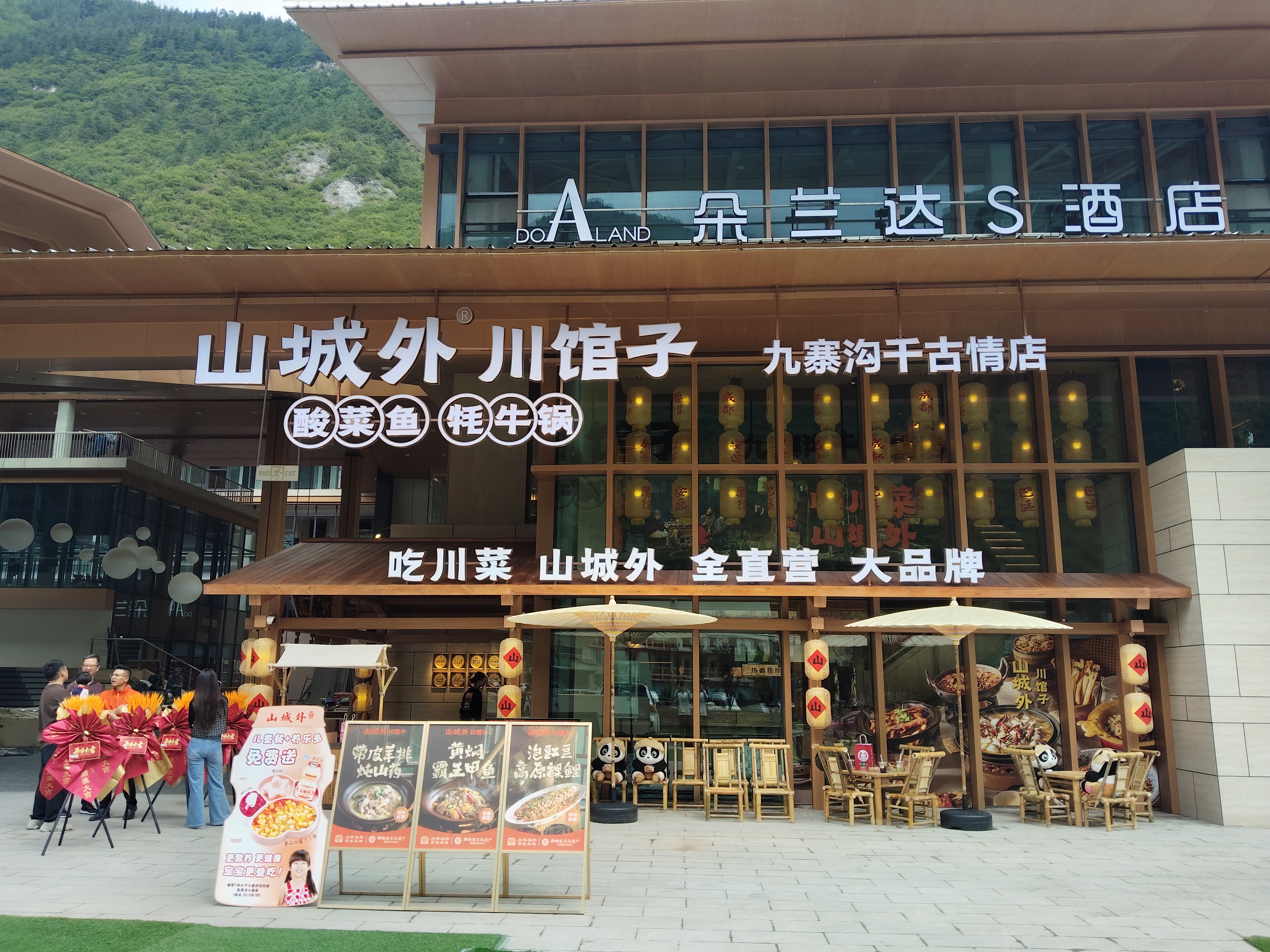 山城外(九寨沟云街店)是山城外品牌继九寨沟沟口店后第二家景区店,位于风景如画的九寨沟千古情景区,毗邻文化演艺中心,客流量密集,文旅消费潜力巨大;店铺面积:540㎡,可提供172个标准餐位。