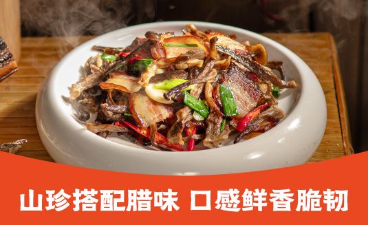 鹿茸菇炒青川腊肉