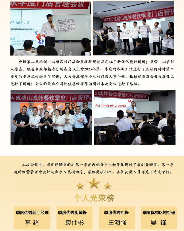 热烈庆祝山城外公司2023年第一季度门店管理会议